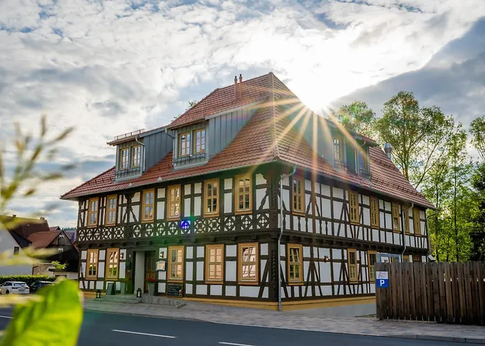 Bertholdsburgから歩いてたった5分に位置するホテル Teutsche Schule Schleusingenはテラスがあります. アラカルトレストランを誇るSchleusingenにあるホテルは,Bergsee Ratscherから車で10分です.